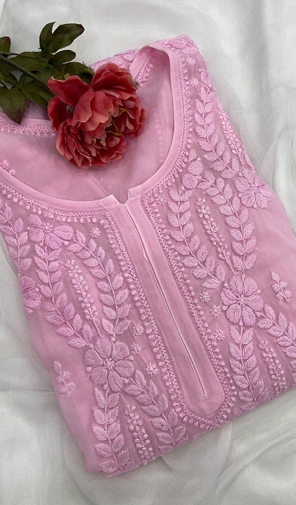 Lakhnavi 手工粘胶乔其纱 Chikankari Kurti - HONC039995