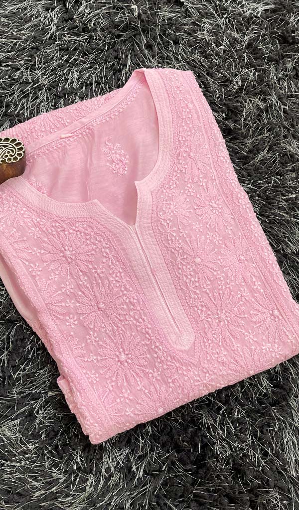 Lucknowi Chikankari kurtas have a charm and elegance that is unique to them. No other form of Indian hand embroidery has that. This delicately embroidered Long Kurti has intricate stitches of chikankari made on a frame by artisans. Usually kurtis like this one takes anywhere between 1 to 2 months to get ready out of which most time is consumed in the hand embroidery and hand printing process. If this is your first Chikankari kurti then be ready to fall in love with this heritage needlecraft and if it’s not your first then probably you’re already in love with the craft. Shop now and embrace the beauty of Nazrana’s heritage needlecraft, redefining sophistication with every product.