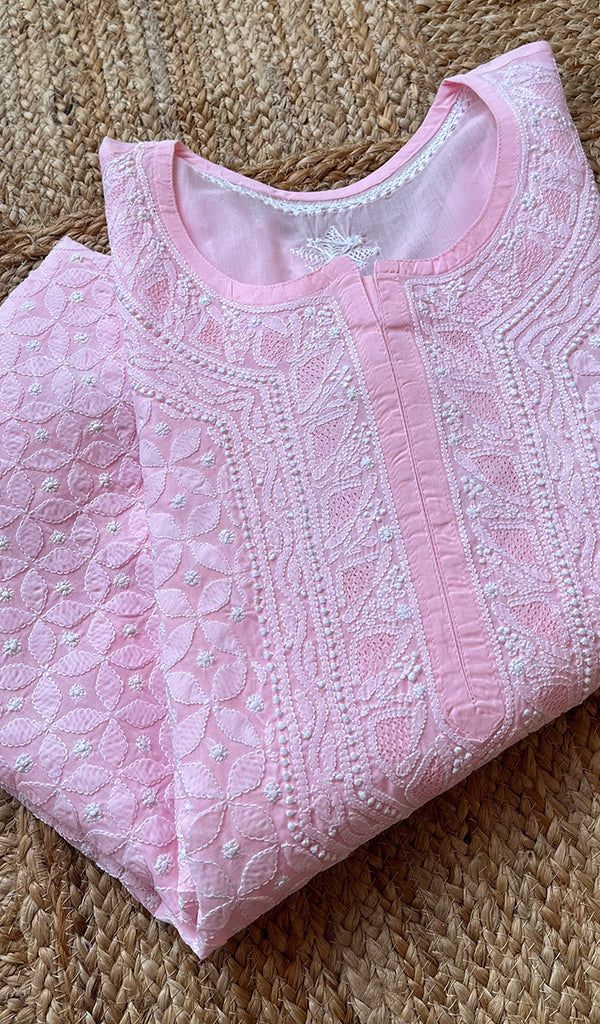 Lucknowi Chikankari kurtas have a charm and elegance that is unique to them. No other form of Indian hand embroidery has that. This delicately embroidered Long Kurti has intricate stitches of chikankari made on a frame by artisans. Usually kurtis like this one takes anywhere between 1 to 2 months to get ready out of which most time is consumed in the hand embroidery and hand printing process. If this is your first Chikankari kurti then be ready to fall in love with this heritage needlecraft and if it’s not your first then probably you’re already in love with the craft. Shop now and embrace the beauty of Nazrana’s heritage needlecraft, redefining sophistication with every product.