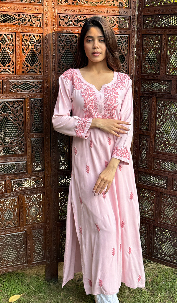Women's Lucknowi Handcrafted Modal Cotton Chikankari Kurti - HONC0232108