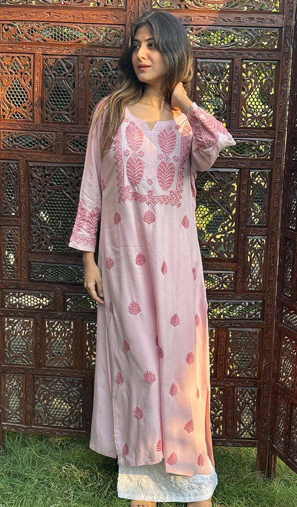 Lucknowi Chikankari kurtas have a charm and elegance that is unique to them. No other form of Indian hand embroidery has that. This delicately embroidered Long Kurti has intricate stitches of chikankari made on a frame by artisans. Usually kurtis like this one takes anywhere between 1 to 2 months to get ready out of which most time is consumed in the hand embroidery and hand printing process. If this is your first Chikankari kurti then be ready to fall in love with this heritage needlecraft and if it’s not your first then probably you’re already in love with the craft. Shop now and embrace the beauty of Nazrana’s heritage needlecraft, redefining sophistication with every product.