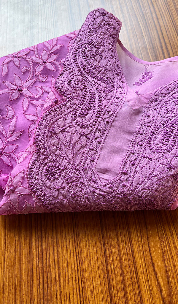 Lucknowi Chikankari kurtas have a charm and elegance that is unique to them. No other form of Indian hand embroidery has that. This delicately embroidered Long Kurti has intricate stitches of chikankari made on a frame by artisans. Usually kurtis like this one takes anywhere between 1 to 2 months to get ready out of which most time is consumed in the hand embroidery and hand printing process. If this is your first Chikankari kurti then be ready to fall in love with this heritage needlecraft and if it’s not your first then probably you’re already in love with the craft. Shop now and embrace the beauty of Nazrana’s heritage needlecraft, redefining sophistication with every product.