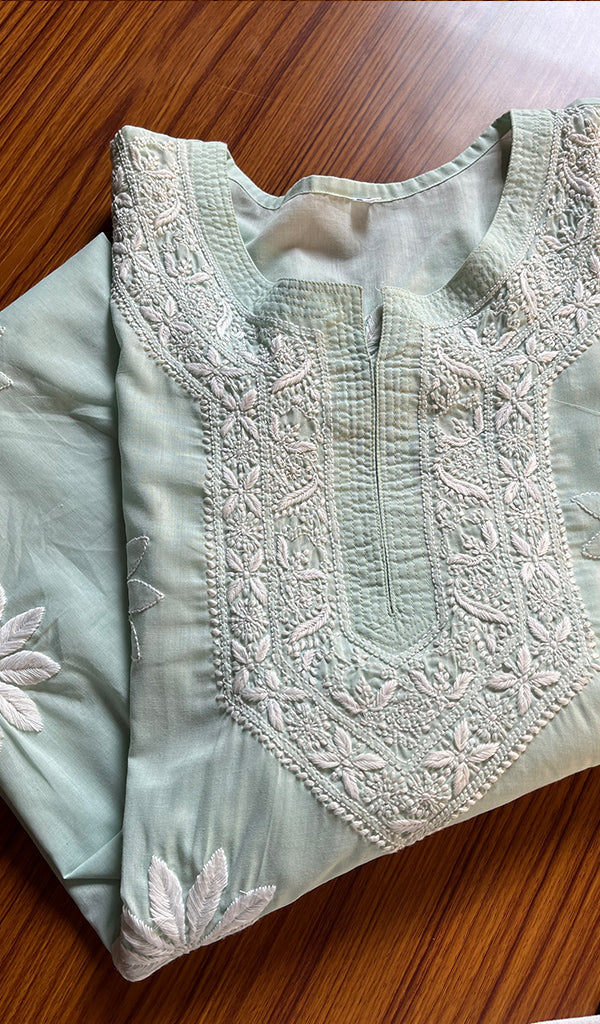 Lucknowi Chikankari kurtas have a charm and elegance that is unique to them. No other form of Indian hand embroidery has that. This delicately embroidered Long Kurti has intricate stitches of chikankari made on a frame by artisans. Usually kurtis like this one takes anywhere between 1 to 2 months to get ready out of which most time is consumed in the hand embroidery and hand printing process. If this is your first Chikankari kurti then be ready to fall in love with this heritage needlecraft and if it’s not your first then probably you’re already in love with the craft. Shop now and embrace the beauty of Nazrana’s heritage needlecraft, redefining sophistication with every product.