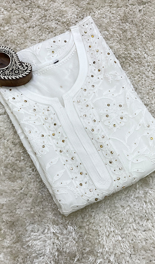 将图像加载到图库查看器中, Women's Lakhnavi Handcrafted Viscose Georgette Chikankari Kurti- HONC0161859