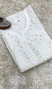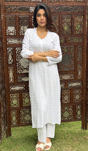 A: A white chikan kurta for women is a classic staple because of its breathable fabric, minimalistic style, and hand embroidery. Nazrana Chikan’s collection offers a range suitable for all age groups and occasions.