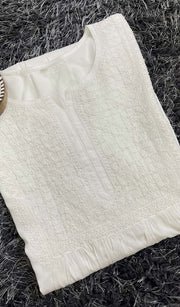 A: Nazrana Chikan’s white chikankari collection includes kurtas, kurtis, suits, short kurtis, and kurta sets — all showcasing classic hand embroidery in serene white.