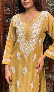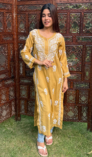A: Original hand-embroidered chikan kurti can be identified by loose threads on the reverse side, fine and even stitches, slight asymmetry indicating craftsmanship, and traditional motifs. Look for fabrics like cotton or modal and purchase from reputable sellers like Nazrana Chikan for guaranteed authenticity.