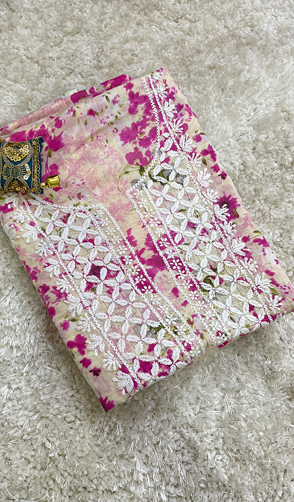 A: Dress material chikankari is ideal for creating suits, kurtis, and festive outfits. Nazrana Chikan’s collection features traditional patterns with modern flair.