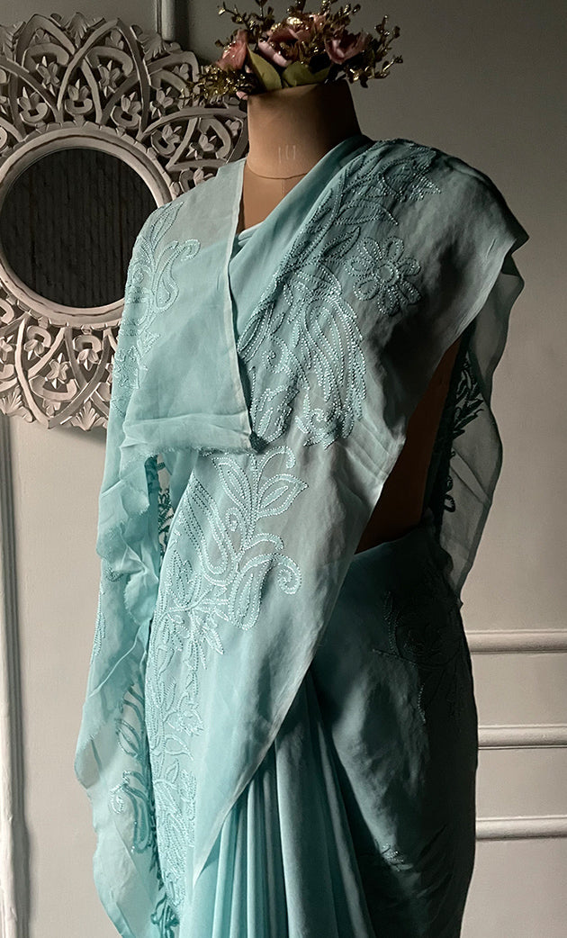 A: Yes, a georgette chikankari saree is lightweight and breathable, making it perfect for summer weddings, functions, or casual elegance.