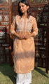 Lucknowi Chikankari kurtas have a charm and elegance that is unique to them. No other form of Indian hand embroidery has that. This delicately embroidered Long Kurti has intricate stitches of chikankari made on a frame by artisans. Usually kurtis like this one takes anywhere between 1 to 2 months to get ready out of which most time is consumed in the hand embroidery and hand printing process. If this is your first Chikankari kurti then be ready to fall in love with this heritage needlecraft and if it’s not your first then probably you’re already in love with the craft. Shop now and embrace the beauty of Nazrana’s heritage needlecraft, redefining sophistication with every product.