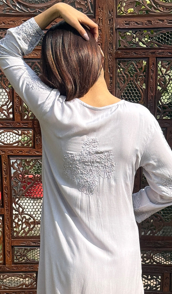 Placeholder Heer Women's Lucknowi Handcrafted Modal Cotton Chikankari Kurti - HONC