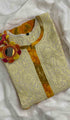 Lucknowi Chikankari kurtas have a charm and elegance that is unique to them. No other form of Indian hand embroidery has that. This delicately embroidered Long Kurti has intricate stitches of chikankari made on a frame by artisans. Usually kurtis like this one takes anywhere between 1 to 2 months to get ready out of which most time is consumed in the hand embroidery and hand printing process. If this is your first Chikankari kurti then be ready to fall in love with this heritage needlecraft and if it’s not your first then probably you’re already in love with the craft. Shop now and embrace the beauty of Nazrana’s heritage needlecraft, redefining sophistication with every product.