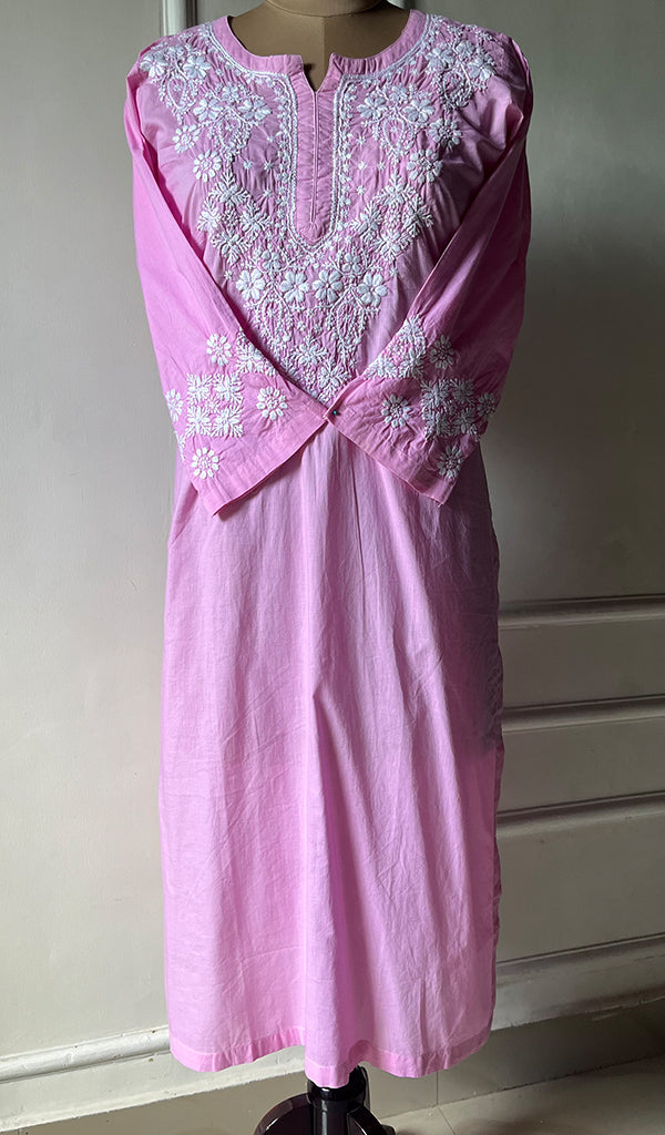 Lucknowi Chikankari kurtas have a charm and elegance that is unique to them. No other form of Indian hand embroidery has that. This delicately embroidered Long Kurti has intricate stitches of chikankari made on a frame by artisans. Usually kurtis like this one takes anywhere between 1 to 2 months to get ready out of which most time is consumed in the hand embroidery and hand printing process. If this is your first Chikankari kurti then be ready to fall in love with this heritage needlecraft and if it’s not your first then probably you’re already in love with the craft. Shop now and embrace the beauty of Nazrana’s heritage needlecraft, redefining sophistication with every product.