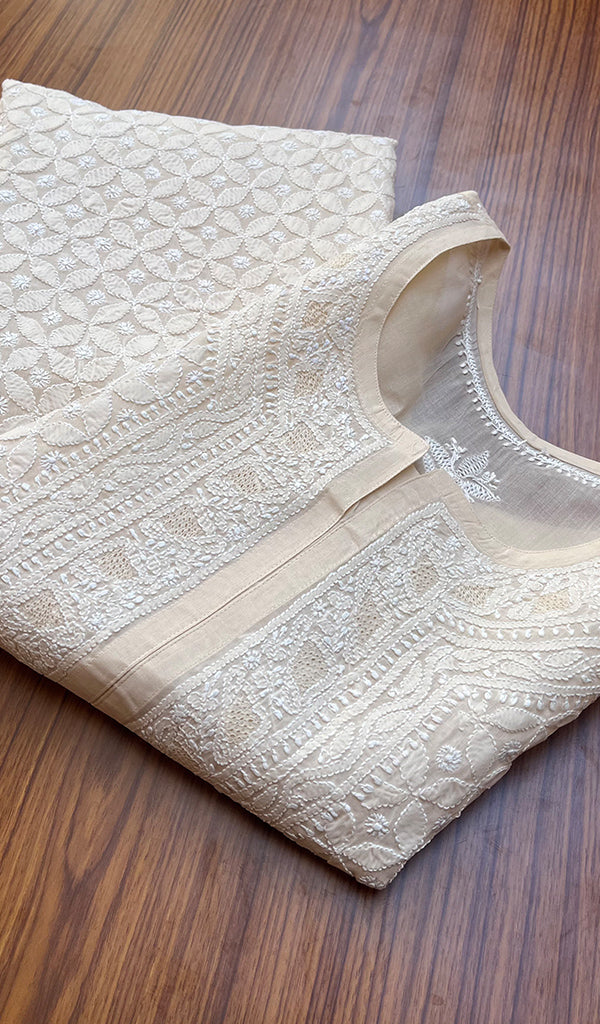 Lucknowi Chikankari kurtas have a charm and elegance that is unique to them. No other form of Indian hand embroidery has that. This delicately embroidered Long Kurti has intricate stitches of chikankari made on a frame by artisans. Usually kurtis like this one takes anywhere between 1 to 2 months to get ready out of which most time is consumed in the hand embroidery and hand printing process. If this is your first Chikankari kurti then be ready to fall in love with this heritage needlecraft and if it’s not your first then probably you’re already in love with the craft. Shop now and embrace the beauty of Nazrana’s heritage needlecraft, redefining sophistication with every product.