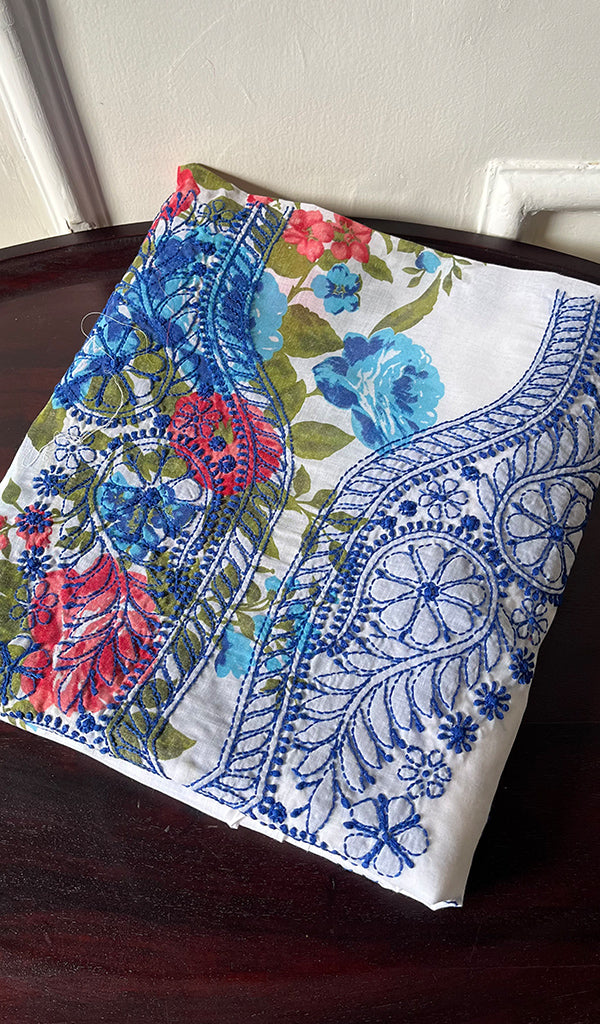 Placeholder Women's Lakhnavi Handcrafted Cotton Chikankari Unstitched Kurti Fabric
