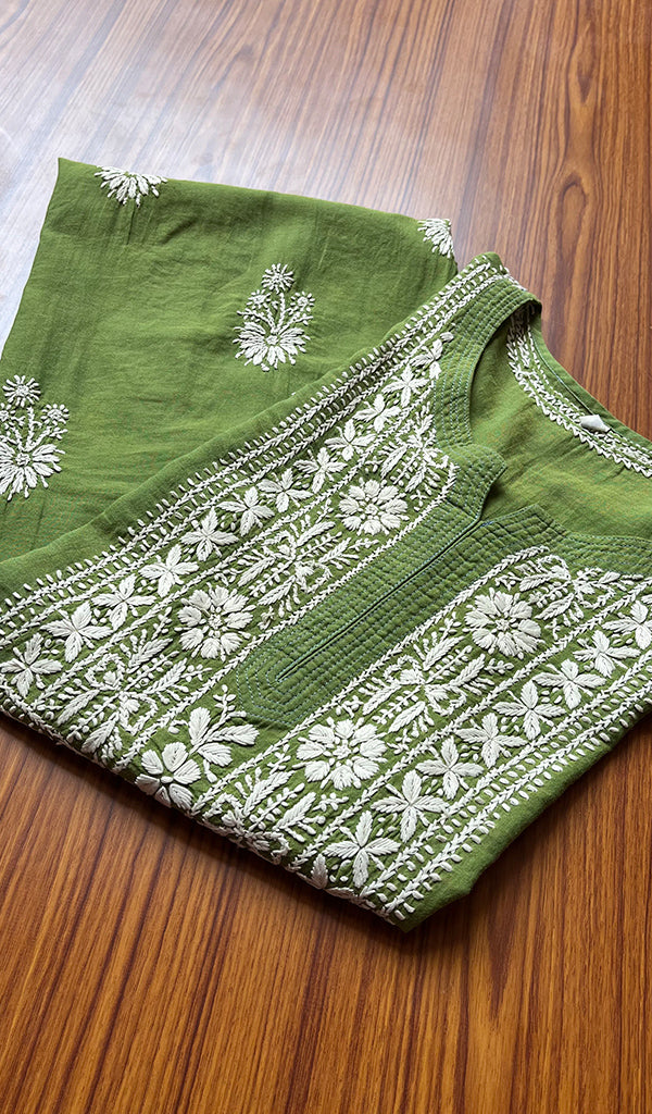 Lucknowi Chikankari kurtas have a charm and elegance that is unique to them. No other form of Indian hand embroidery has that. This delicately embroidered Long Kurti has intricate stitches of chikankari made on a frame by artisans. Usually kurtis like this one takes anywhere between 1 to 2 months to get ready out of which most time is consumed in the hand embroidery and hand printing process. If this is your first Chikankari kurti then be ready to fall in love with this heritage needlecraft and if it’s not your first then probably you’re already in love with the craft. Shop now and embrace the beauty of Nazrana’s heritage needlecraft, redefining sophistication with every product.