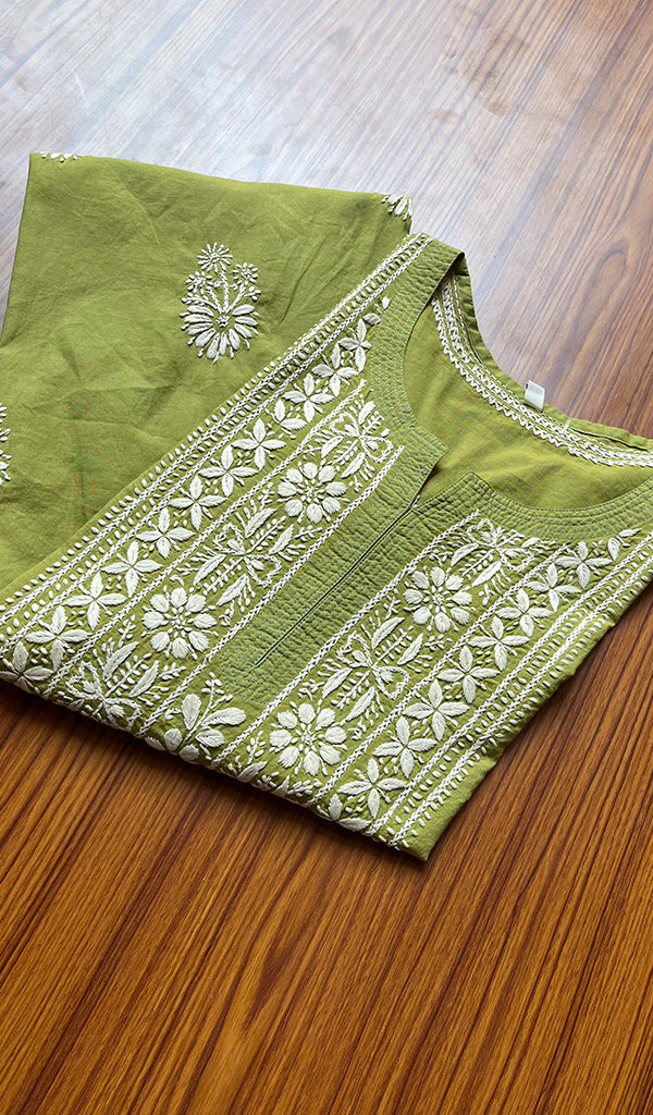 Lucknowi Chikankari kurtas have a charm and elegance that is unique to them. No other form of Indian hand embroidery has that. This delicately embroidered Long Kurti has intricate stitches of chikankari made on a frame by artisans. Usually kurtis like this one takes anywhere between 1 to 2 months to get ready out of which most time is consumed in the hand embroidery and hand printing process. If this is your first Chikankari kurti then be ready to fall in love with this heritage needlecraft and if it’s not your first then probably you’re already in love with the craft. Shop now and embrace the beauty of Nazrana’s heritage needlecraft, redefining sophistication with every product.