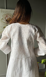 Lucknowi Chikankari kurtas have a charm and elegance that is unique to them. No other form of Indian hand embroidery has that. This delicately embroidered Long Kurti has intricate stitches of chikankari made on a frame by artisans. Usually kurtis like this one takes anywhere between 1 to 2 months to get ready out of which most time is consumed in the hand embroidery and hand printing process. If this is your first Chikankari kurti then be ready to fall in love with this heritage needlecraft and if it’s not your first then probably you’re already in love with the craft. Shop now and embrace the beauty of Nazrana’s heritage needlecraft, redefining sophistication with every product.