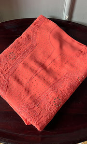 Chikan embroidery, with its very fine hand stitches, is pure elegance. It depicts the art of dressing. Our collection has elegant prints, perfect for offices. Cotton, georgette, and chiffon are lightweight. They keep the wearer comfortable all day while still being formal work attire.