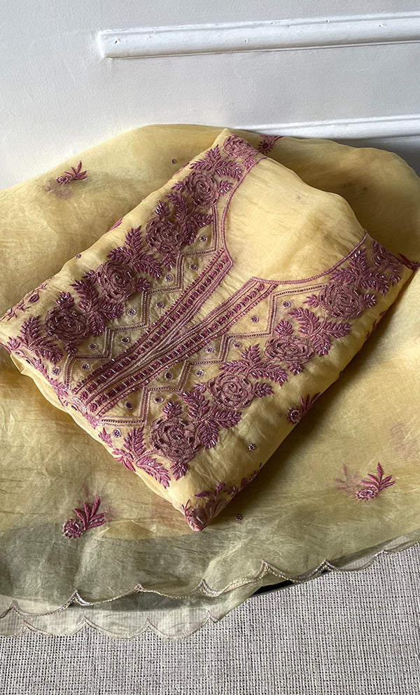 The thing about Lakhnavi Chikankari Suits is that most of them are one of a kind. Once a design is sold out, it’s almost impossible to find a replica or even a similar design anywhere in the market or online. This is what makes Chikankari suit fabrics unique just like this one. It’s made with the finest chikankari stitches by extremely skilled craftsmen of Lucknow. The advantage of buying an unstitched Chikankari suit fabric is that you can get it stitched and customized as per your personal style. Shop now and embrace the beauty of Nazrana’s heritage needlecraft, redefining sophistication with every product.
