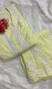 - Intricate Embroidery: The chikan embroidery on these kurta sets for women is hand-crafted by skilled artisans, featuring delicate patterns that reflect the rich cultural heritage of Lucknow.