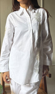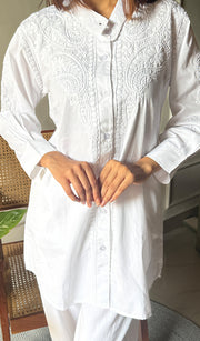 A: A chikan kurta set typically includes a long hand-embroidered kurta and a matching bottom. Nazrana Chikan offers these in a range of colors and sizes for women.