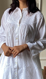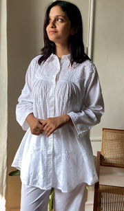 A: A chikan kurta set typically includes a long hand-embroidered kurta and a matching bottom. Nazrana Chikan offers these in a range of colors and sizes for women.
