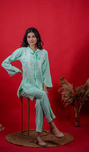 - Intricate Embroidery: The chikan embroidery on these kurta sets for women is hand-crafted by skilled artisans, featuring delicate patterns that reflect the rich cultural heritage of Lucknow.