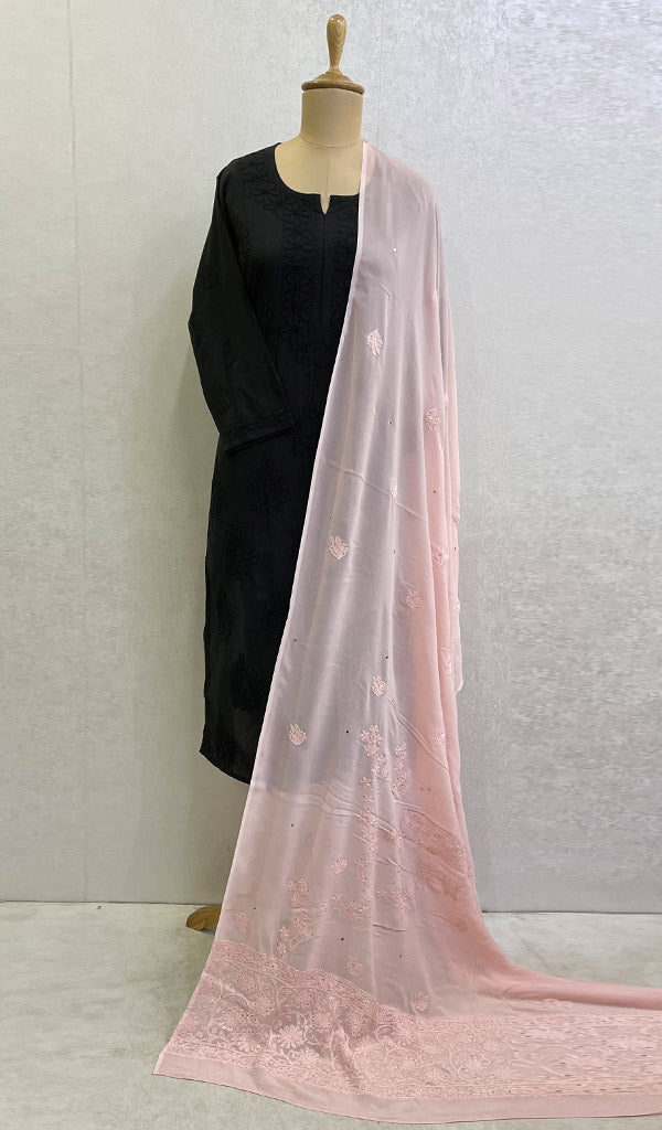 勒克瑙手工制作粘胶乔其纱 Chikankari Dupatta - Honc095695