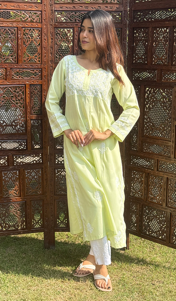 Falak  Women's Lucknowi Handcrafted Cotton Chikankari Kurti - HONC0220664