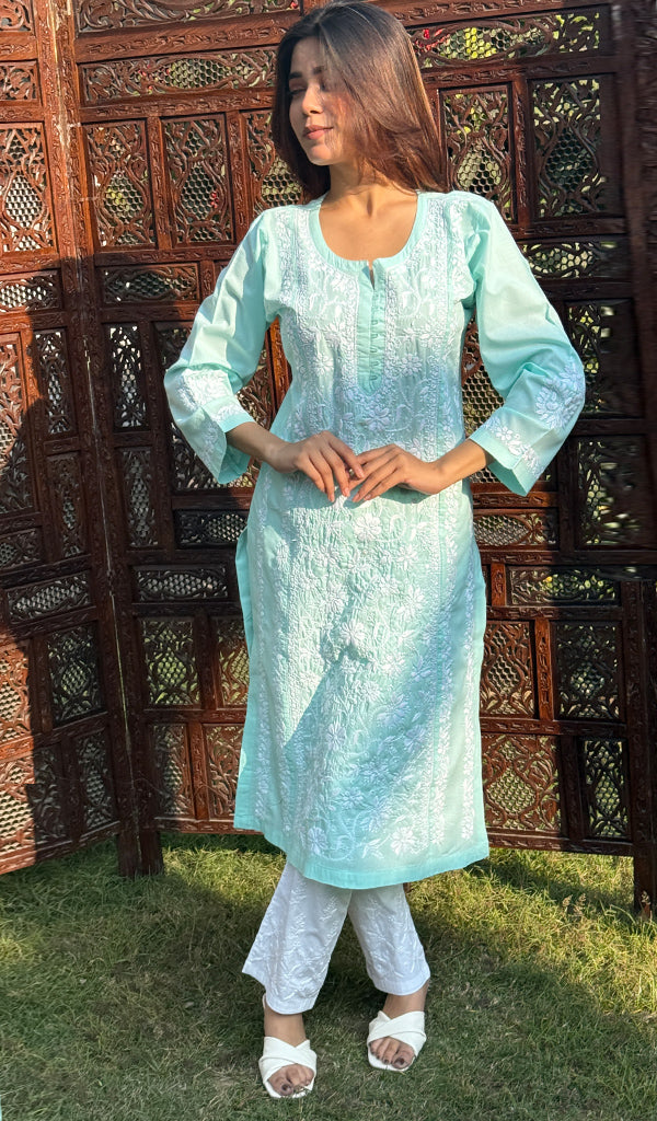 Iqra Women's Lucknowi Handcrafted Cotton Chikankari Kurti - HONC0164375