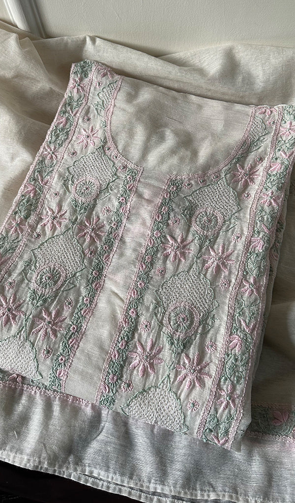 The thing about Lakhnavi Chikankari Suits is that most of them are one of a kind. Once a design is sold out, it’s almost impossible to find a replica or even a similar design anywhere in the market or online. This is what makes Chikankari suit fabrics unique just like this one. It’s made with the finest chikankari stitches by extremely skilled craftsmen of Lucknow. The advantage of buying an unstitched Chikankari suit fabric is that you can get it stitched and customized as per your personal style. Shop now and embrace the beauty of Nazrana’s heritage needlecraft, redefining sophistication with every product.