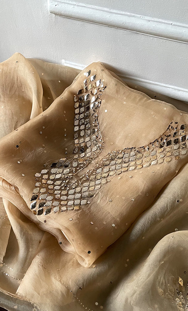 The thing about Lakhnavi Chikankari Suits is that most of them are one of a kind. Once a design is sold out, it’s almost impossible to find a replica or even a similar design anywhere in the market or online. This is what makes Chikankari suit fabrics unique just like this one. It’s made with the finest chikankari stitches by extremely skilled craftsmen of Lucknow. The advantage of buying an unstitched Chikankari suit fabric is that you can get it stitched and customized as per your personal style. Shop now and embrace the beauty of Nazrana’s heritage needlecraft, redefining sophistication with every product.