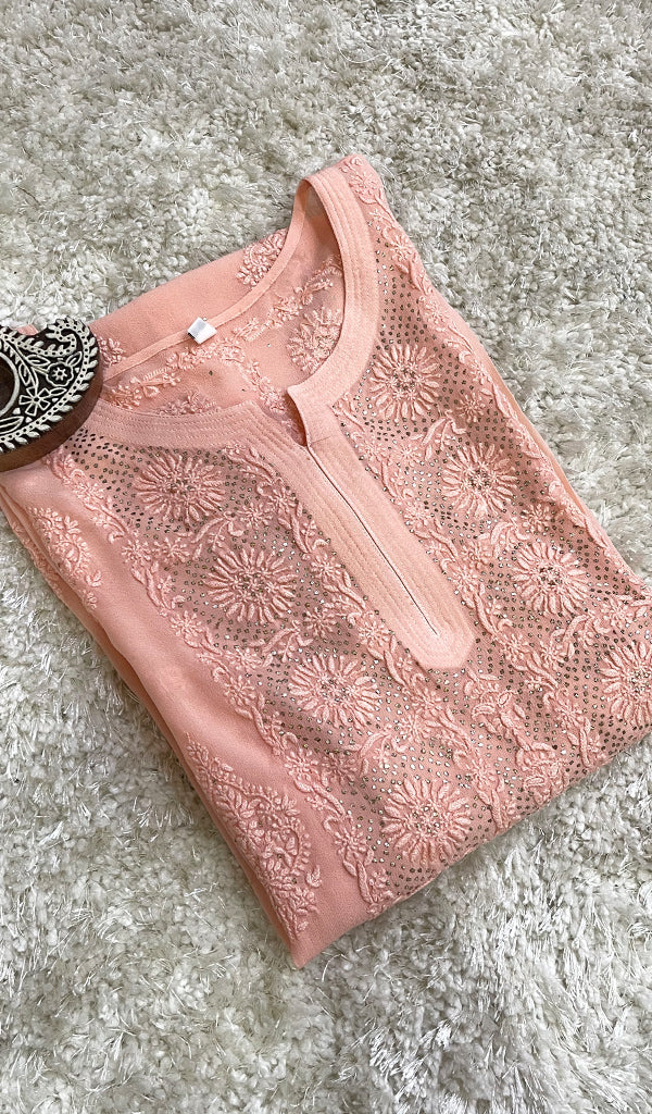 Placeholder Sadaf Women's Lakhnavi Handcrafted Viscose Georgette Chikankari Kurti